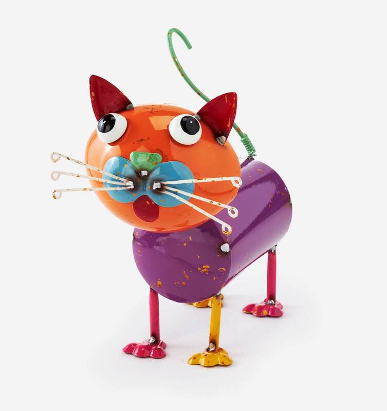 Add vivid colors and unique decorative accents to indoor or outdoor spaces with this Metal Cat Figurine.
