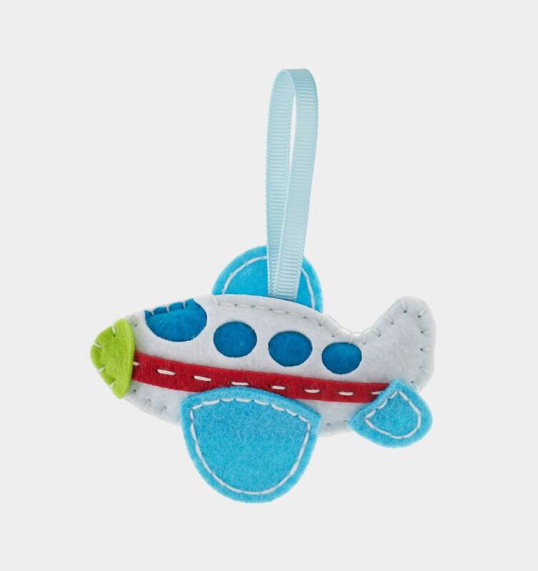 An easy way to introduce kids to crafting, this kit features a cool white and blue airplane design with red and green detailing. Kit includes: Felt, Batting, Sewing Thread, Plastic Needle, and Ribbon Hanging Rope. Makes for a great gift idea as well. Comes packaged in a white box (3.5x0.7x5.5), ready for gifting.