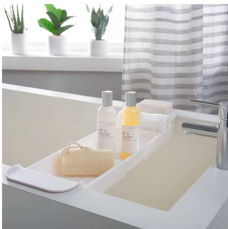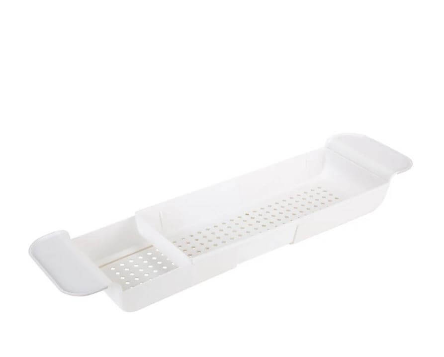 The Moda bathtub caddy is expandable up to 31" and features non-slip handles that fit perfectly across any bathtub.