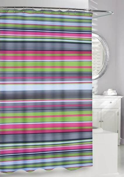 The Tempest Stripe fabric shower curtain is the perfect item for any shower and bathroom. Made from 100% Polyester. The unique design will make any bathroom have that luxurious feel!