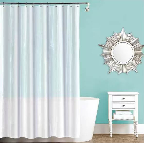 This heavy duty, 8-gauge clear or frosted liner is made of 100% chloride-free EVA. The (9) metal grommets help prevent tearing. Wipe this shower liner with a damp cloth for an easy clean.