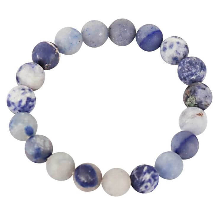 Dive into the celestial depths with our Neptune Bracelet, a mesmerizing creation handcrafted from the serene energies of Blue Aventurine, the deep blue elegance of Sodalite, and the soothing patterns of Blue Spot Jasper.