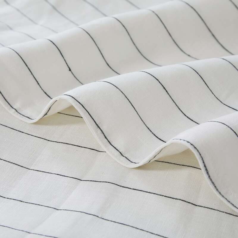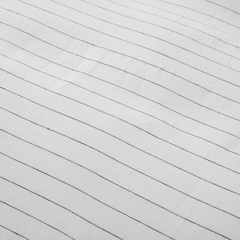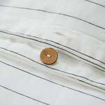 This French linen duvet cover set is a neutral white with a grey pinstripe, providing classic elegance to your room. Our linen, originally sourced from France, is prewashed making it extra soft and giving you that natural "lived-in" look. Take it straight from the dryer to the bed, no extra ironing or pressing required. Our quality is in the details. The duvet covers are sewn with a heavy hidden button placket at the end of the bed serving to not only hide the button closure, but to provide a substantial finish to the bottom of the cover. The pillowcases are sewn with a generous housewife tuck so your pillows never peek out. Finally, the set is finished with a double stitched edge giving it a polished, tailored look.