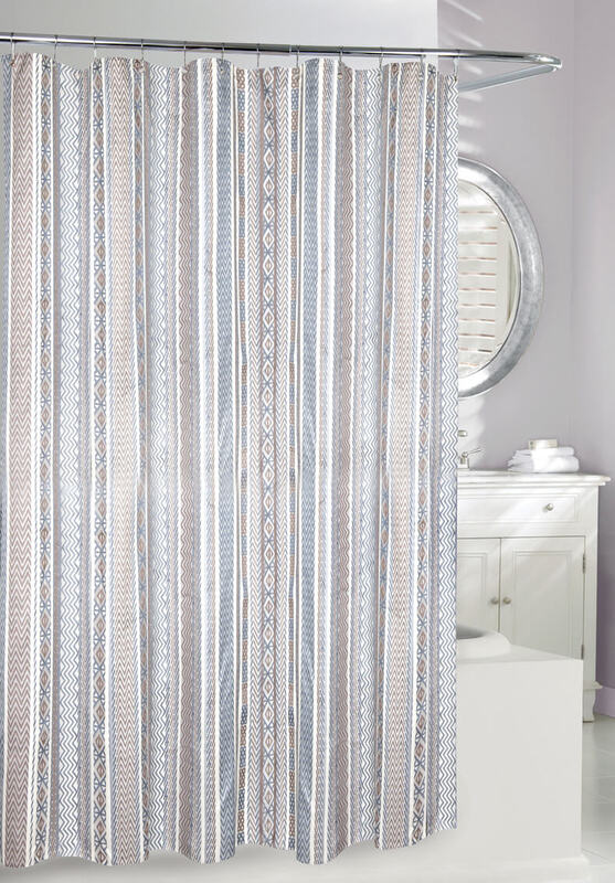 Add some character and class to your bathroom with this fresh looking shower curtain. The Aztec Jacquard fabric shower curtain is the perfect item for any shower and bathroom.