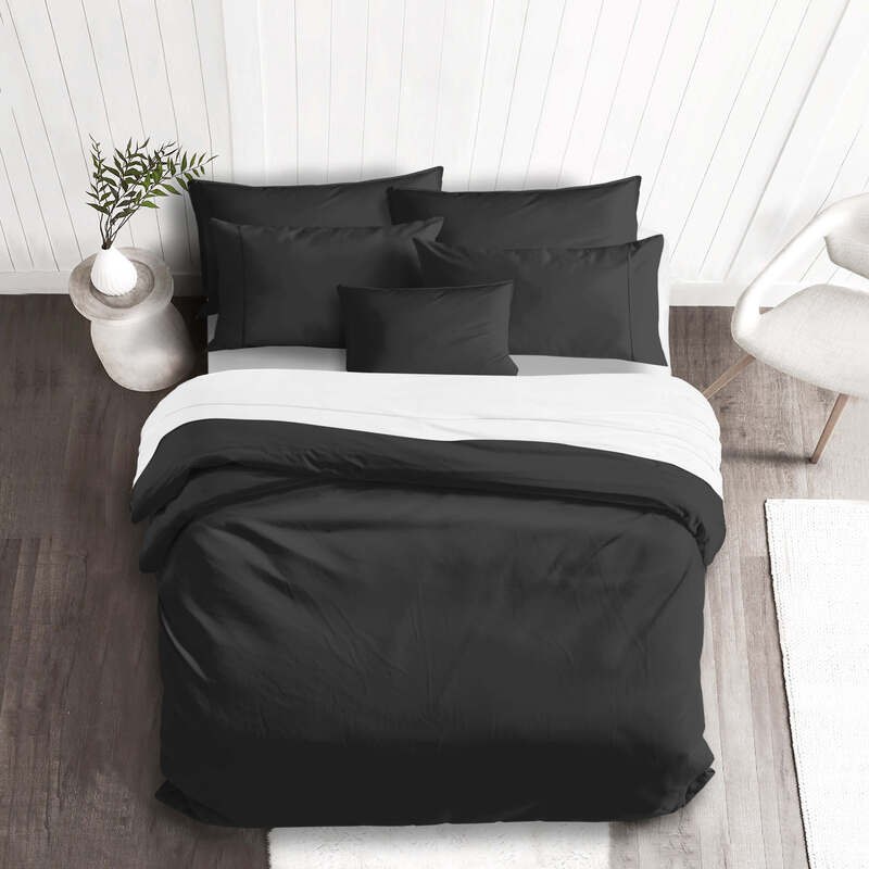 Fabric Content: 100% Cotton Sateen, 300 Thread Count. Reverses to Black 100% Cotton Sateen, 300 Thread Count