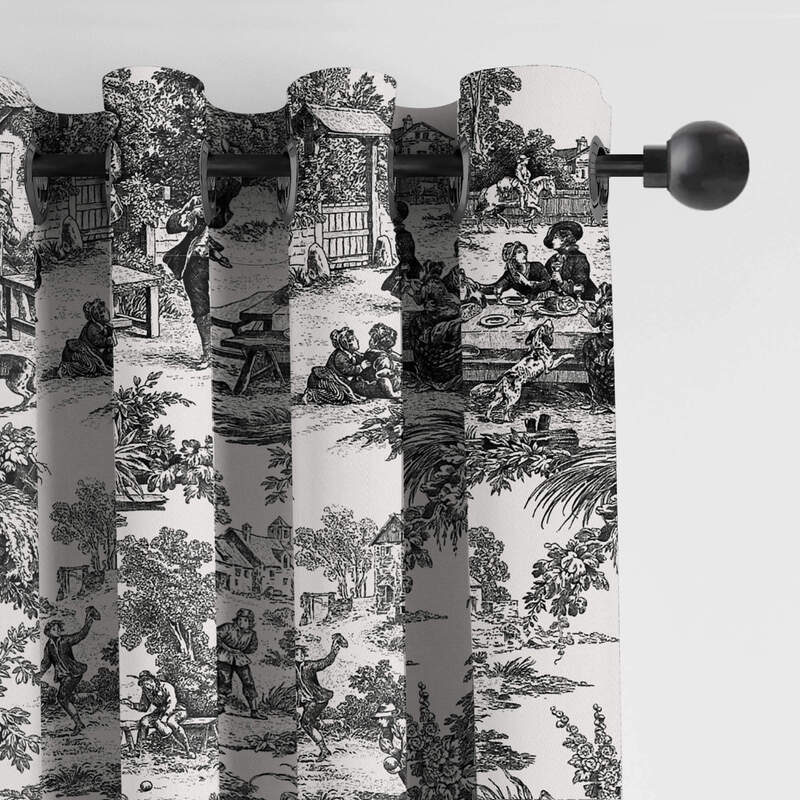Au Village is an ode to the timeless pastoral scene. The soft ivory twill fabric serves as the canvas for this classic toile theme.
