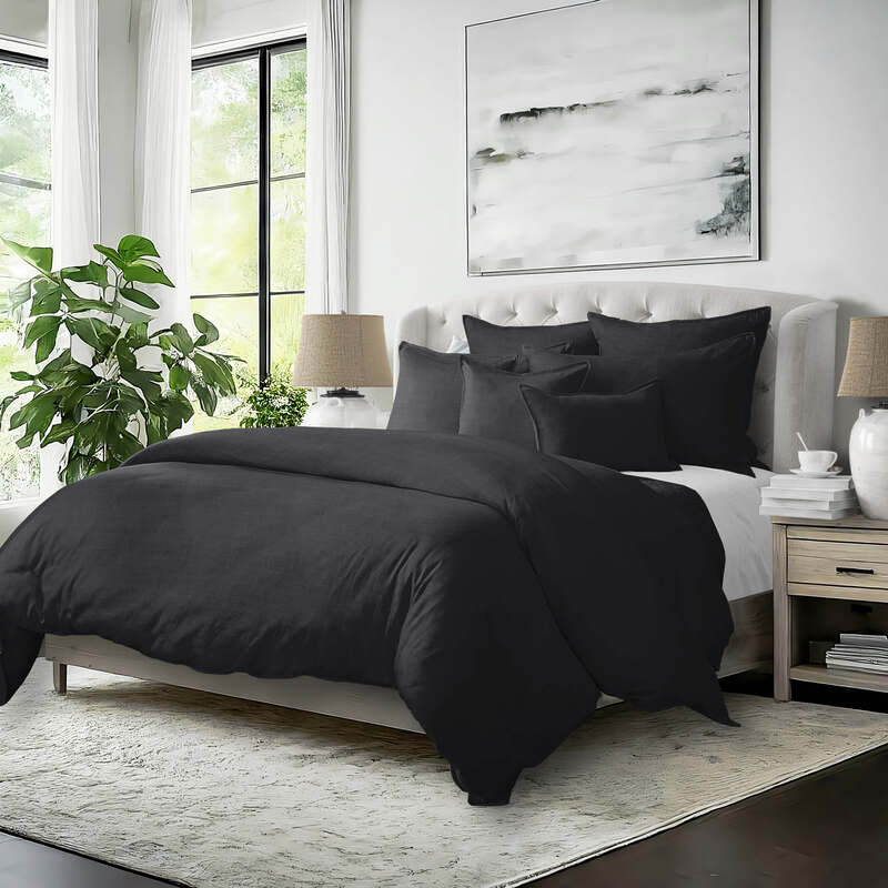 The Elsie bedding ensemble offers a luxurious blend of style and comfort, featuring fabric that mimics the sophisticated appearance of linen but with a significantly softened hand feel. This ensemble combines the elegant look of linen with the added benefit of a more gentle, inviting texture. Perfect for those who appreciate refined aesthetics and cozy comfort, Elsie bedding transforms your bedroom into a serene retreat with its meticulously designed pieces and high-quality materials.