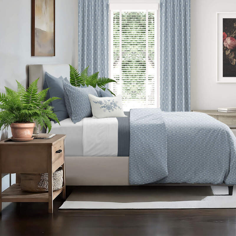 Elevate your bedroom sanctuary with the Samuel Diamond ensemble—a symphony of sophistication. Crafted from cotton slub fabric, it’s more than bedding; it’s tactile poetry. The diamond motif is timeless and understated yet adding depth and intrigue. Samuel Diamond isn’t just about sleep; it’s about texture, depth, and the art of rest.
