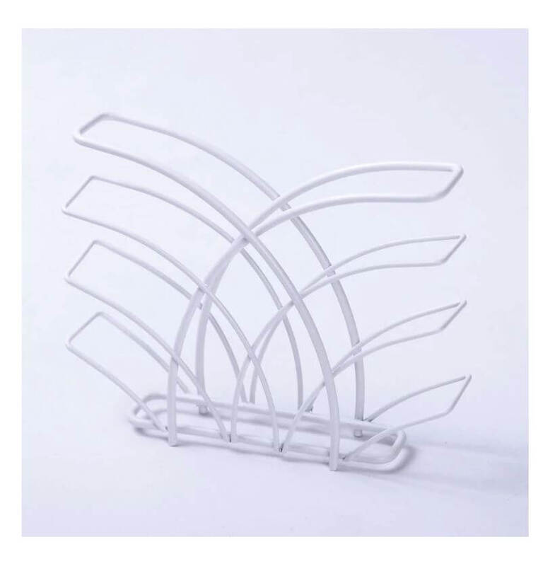 White powder-coated wire napkin caddy.