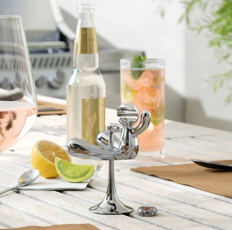 Balances on its included display stand. Made of cast metal with a polished chrome finish, Rodeo Buddy is a high-quality bottle opener that will last and keep its shine!