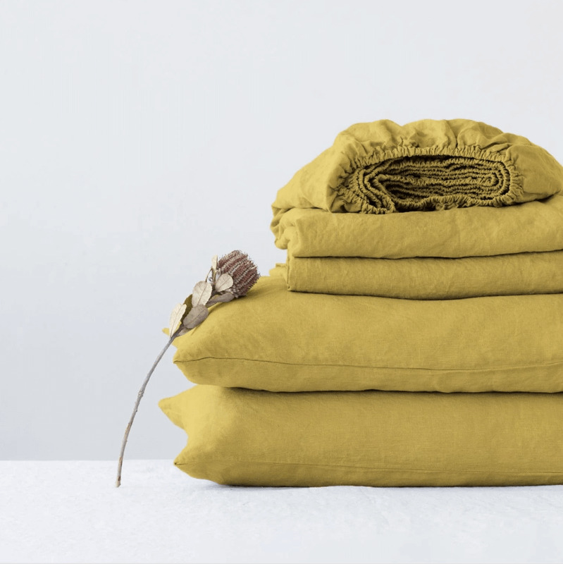 - Pillowcases have envelope closure- Duvet cover has a natural coconut shell button closure- Duvet cover has interior corner ties to keep the duvet in place- Fitted sheet has an elastic hem along all sides- 100% linen, 160 g/m2- Stone washed for extra softness- Handmade with love in Lithuania- OEKO-TEX® and EUROPEAN FLAX® certified linen fabric