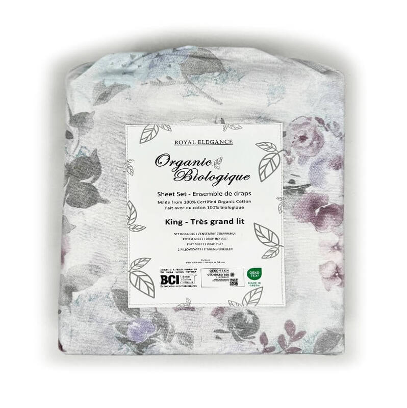 The Violet Blooms Organic Cotton Sheet Set infuses your sleep space with lavender fields in full bloom. Soft purple blossoms and sprigs of green create a peaceful, floral sanctuary. Crafted from 100% certified organic cotton, it’s as gentle on your skin as it is on the planet.