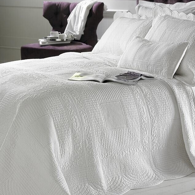 Crisp, clean, and classic—the Tina Quilt in White is a timeless essential for any bedroom. Crafted from 100% cotton, it features elegant stitched detailing that creates subtle texture and visual interest. The pure white palette offers endless versatility, whether styled as a stand-alone coverlet or layered with your favorite blankets and throws. A perfect choice for those who love fresh, hotel-inspired bedding with a touch of heirloom charm.