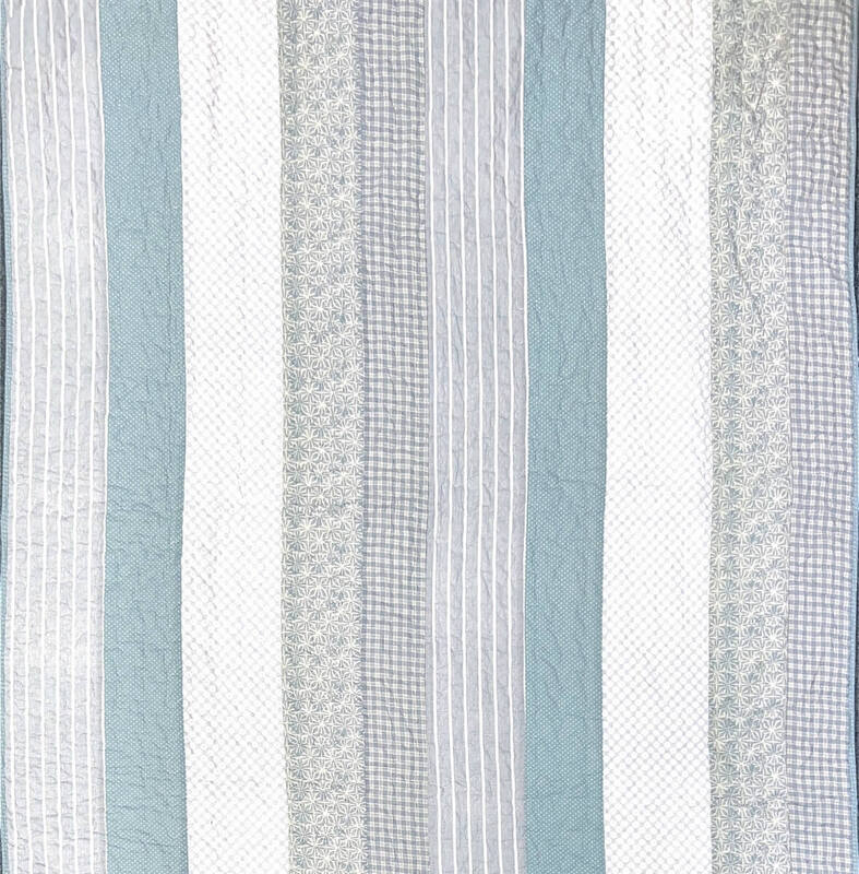Light, fresh, and effortlessly charming—the Summer Breeze Quilt is crafted from 100% cotton for breathable comfort. Its soothing palette of soft blues, greys, and whites is arranged in a striped patchwork design with subtle prints and textures, evoking the airy feel of a seaside retreat. Perfect as a lightweight layer for warm nights or for adding a touch of coastal-inspired style to your bedroom year-round.