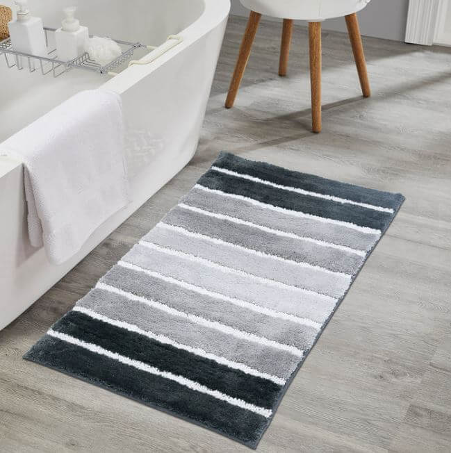 Add a touch of modern elegance to your bathroom with this Ombre Stripe Bath Rug, crafted from ultra-soft micro polyester for a plush, absorbent feel underfoot. The contemporary mbre stripe design enhances any décor, creating a soothing visual appeal.