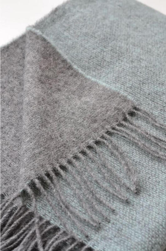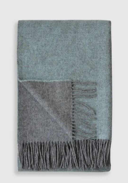 This reversible throw features a versatile color scheme that is crafted from luxurious New Zealand wool and adorned with plush fringe.