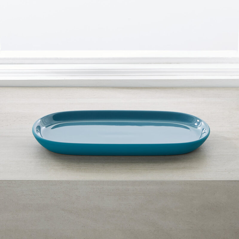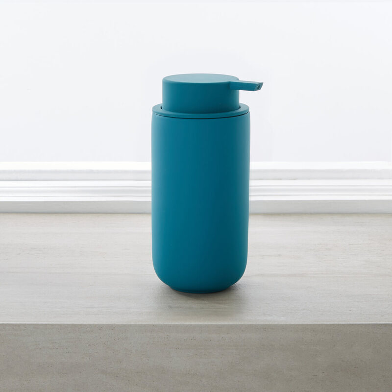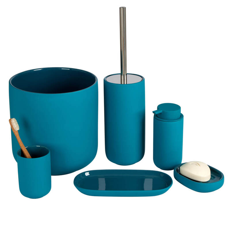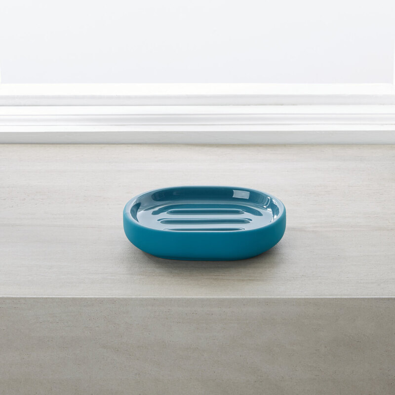 The combination of a high-gloss glaze and a matte, soft-touch finish enhances the sophistication of the Callan ceramic bathroom accessories line.