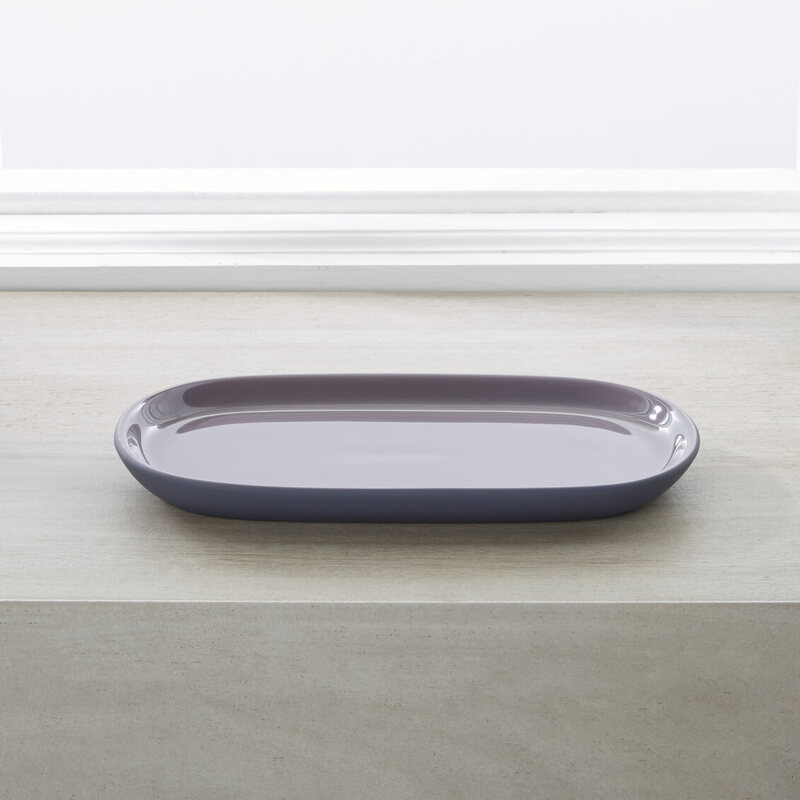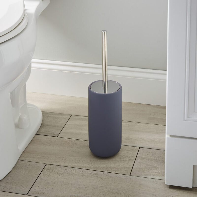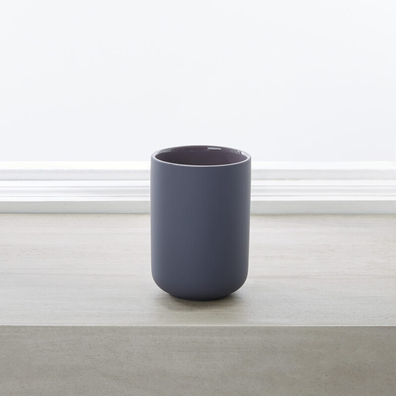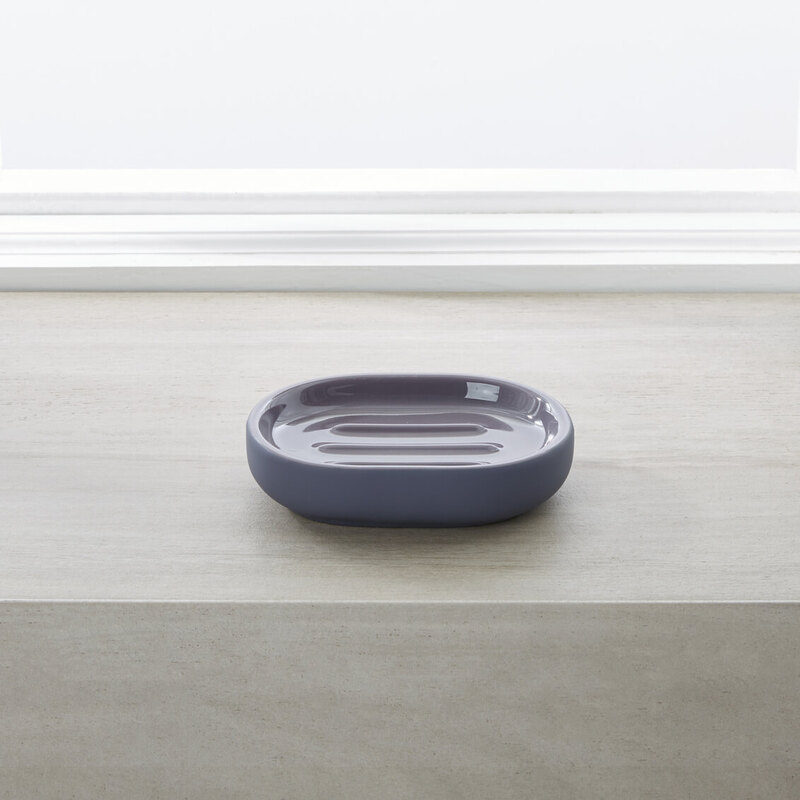 The combination of a high-gloss glaze and a matte, soft-touch finish enhances the sophistication of the Callan ceramic bathroom accessories line.