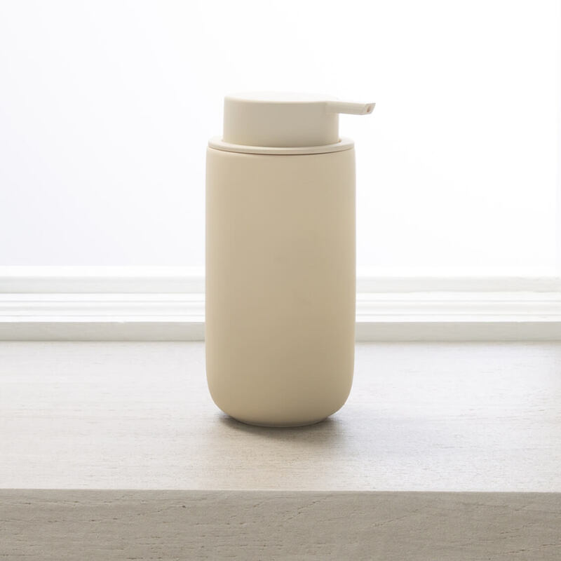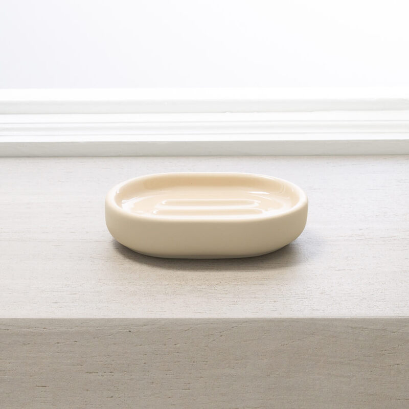 The combination of a high-gloss glaze and a matte, soft-touch finish enhances the sophistication of the Callan ceramic bathroom accessories line.