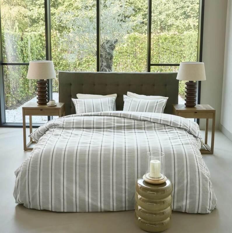 Natural colour duvet cover set with pretty embroidered green fir trees