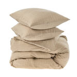 Each set includes a duvet cover and two pillow cases, packaged beautifully in a matching linen bag. Machine Washable.