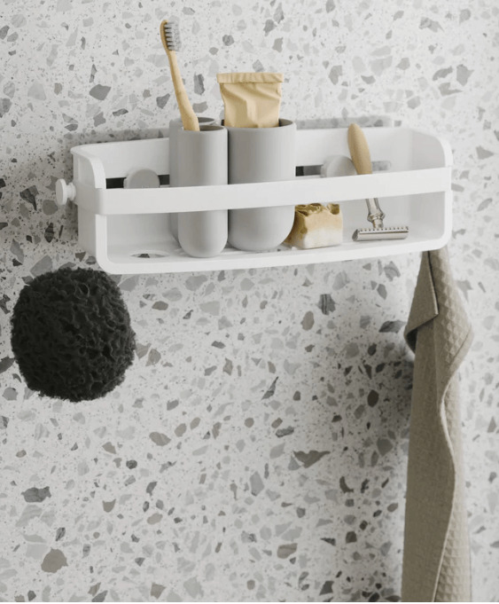 This shower caddy has clever storage for your shower essentials including body wash, shampoo and conditioner, razors and loofas.
