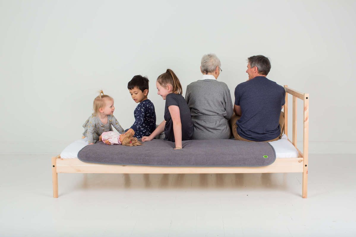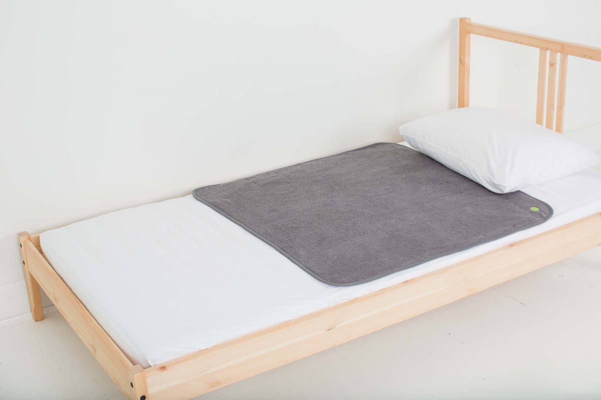 Peapod Mats lie flat on top of bed sheets and stay in place providing a comfortable sleep while keeping the sheets dry.