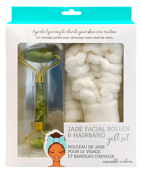 The Jade Facial Roller & Hairband Set features an anti-squeak roller and provides a gentle, soothing massage and reduces the appearance of puffiness and redness. The Hairband keeps your hair out of the way for a hands-free convenience for your daily skincare routine.