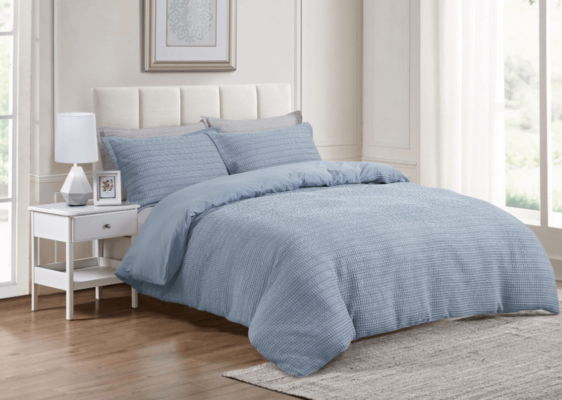 100% Waffle Jacquard Reversing to a 200 Thread Count Solid Percale Cotton