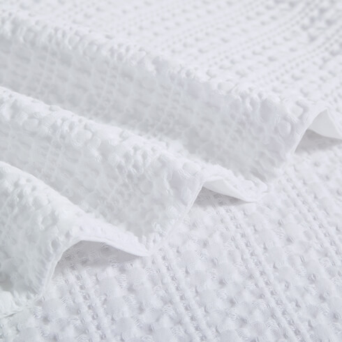100% Waffle Jacquard Reversing to a 200 Thread Count Solid Percale Cotton