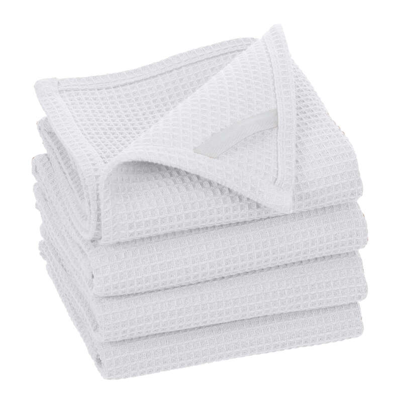 A tightly woven waffle texture from 100% cotton makes these kitchen linens highly absorbent for lint-free cleaning.